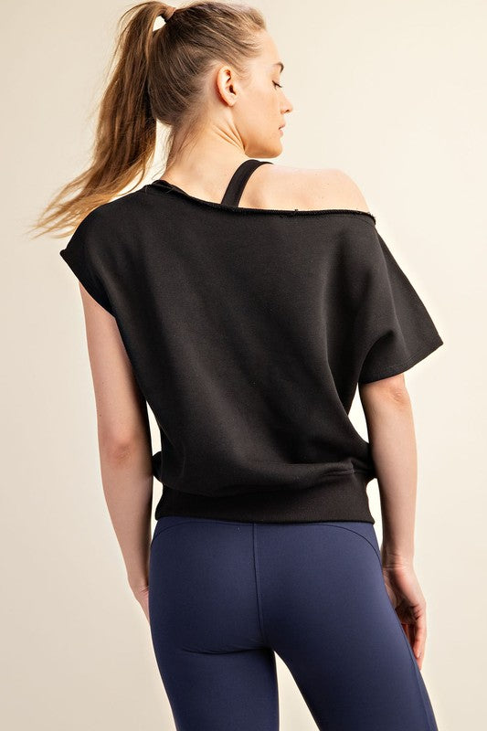 Unleash your style with the Ainsley Off The Shoulder Top. This black top is perfect for a chic look.