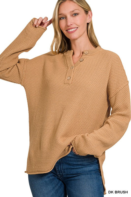 Stay warm and stylish with our Button Up Basic Sweater. Made with a 4-button henley neckline, this sweater is perfect for any casual occasion. Keep things simple and chic with this classic basic sweater.