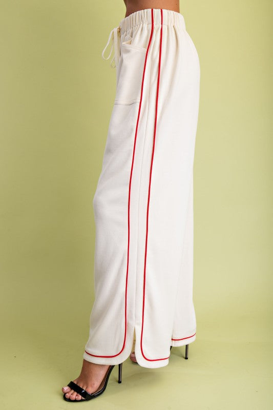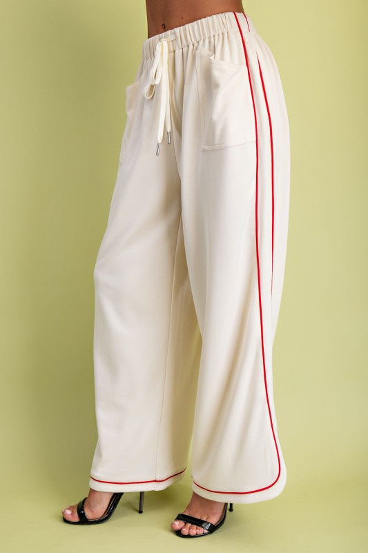 Experience ultimate comfort and style in our Elise Elevated Soft Knit Pants. These pants feature a double soft knit fabric for a luxurious feel and are elevated with elegant contrasting piping details. Stay cozy and chic at all times with this must-have piece in your wardrobe.