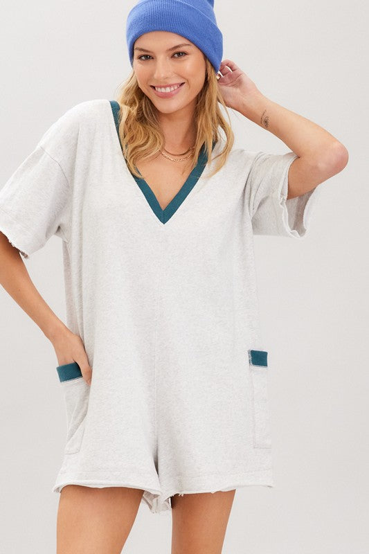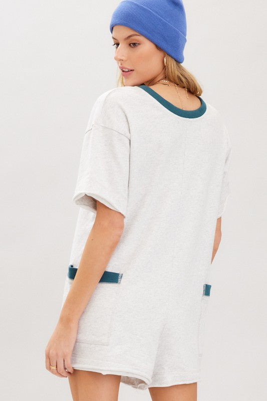 Indulge in comfort and style with the Ella Contrast Romper! Made from soft cotton terry, this romper features a beautiful contrast design that adds a touch of sophistication to your loungewear. Perfect for a relaxed day at home or a casual outing, this romper is a must-have for any fashion-forward and comfort-loving individual. Upgrade your wardrobe and elevate your lounging experience with the Ella Contrast Romper.