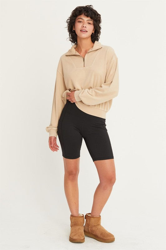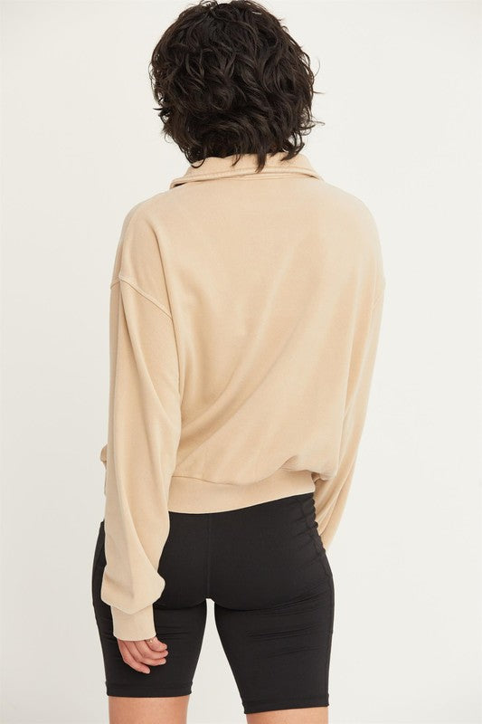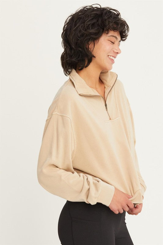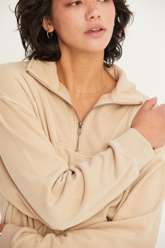 Introducing the Hazel Half Zip Sweatshirt - the perfect blend of style and functionality. This super cute sweatshirt features a convenient half zip design for easy on and off, making it a must-have for on-the-go fashionistas. Stay warm and chic in this essential addition to your wardrobe.