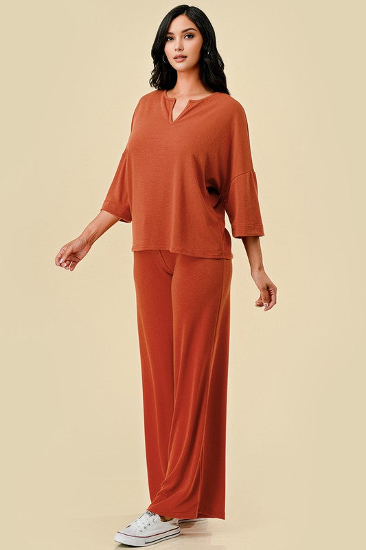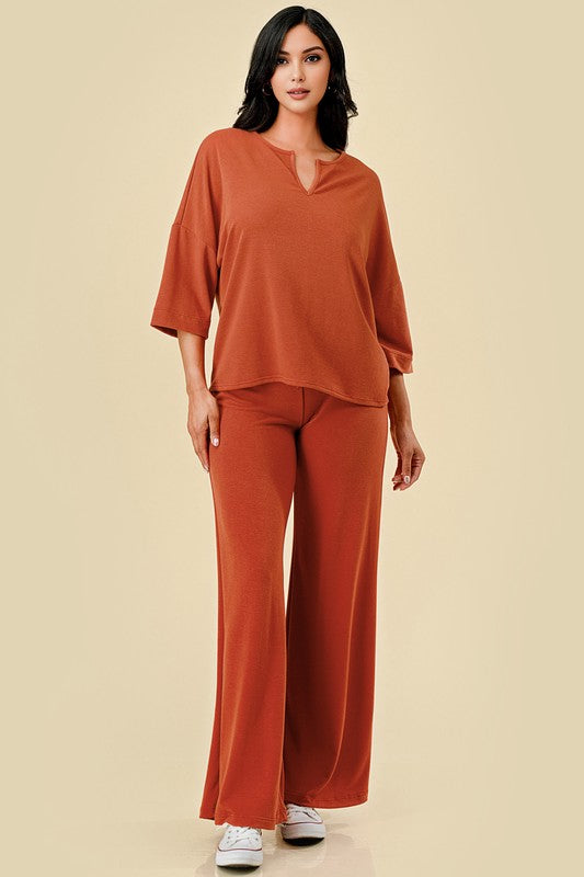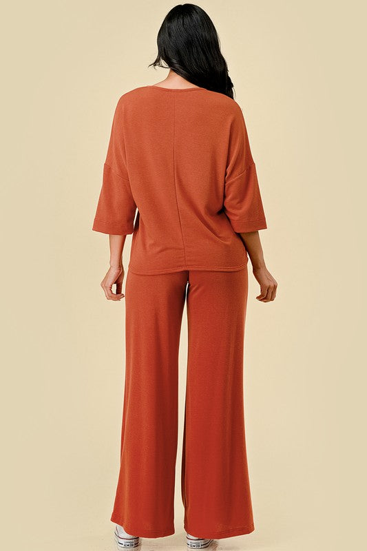 Expertly crafted with a super soft and cozy fabric, the Olivia Knit Set is the ultimate in comfort and style. Featuring 3/4 length sleeves, this pants set is perfect for lounging or running errands. Stay warm and comfortable all day long with this must-have addition to your wardrobe.