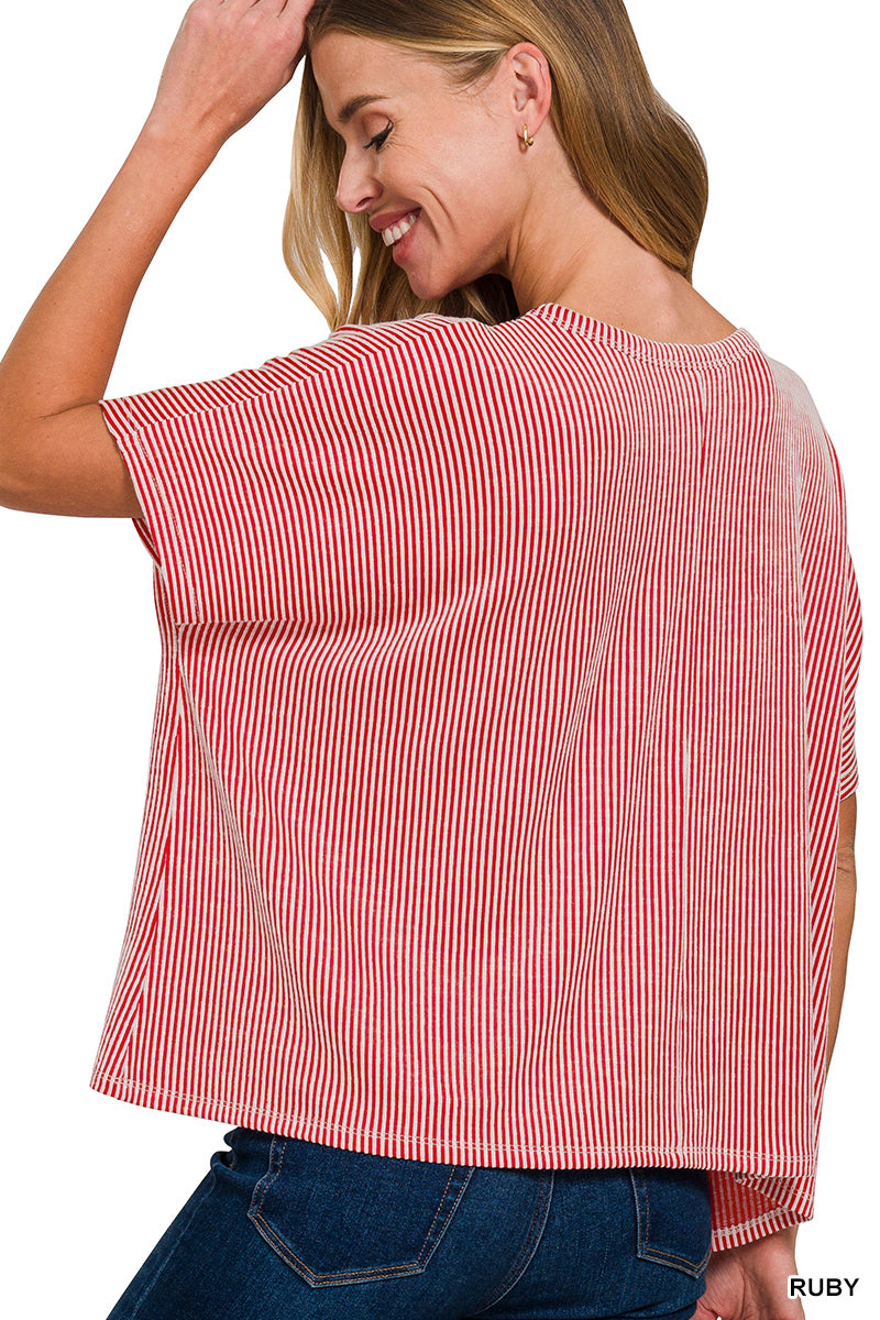 This Stacey Striped Ribbed Top is a must-have addition to your wardrobe. Made from high-quality ribbed fabric, this top is super cute and versatile. Its striped design adds a touch of style, while the ribbed texture provides a flattering fit. Perfect for any occasion, this top is a staple for any fashion-forward individual.