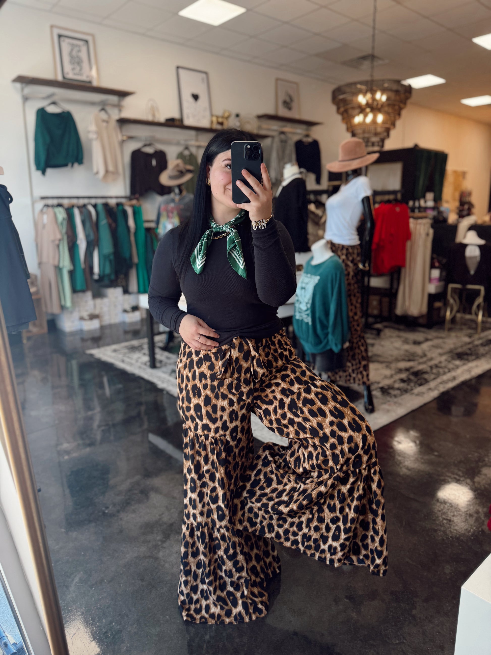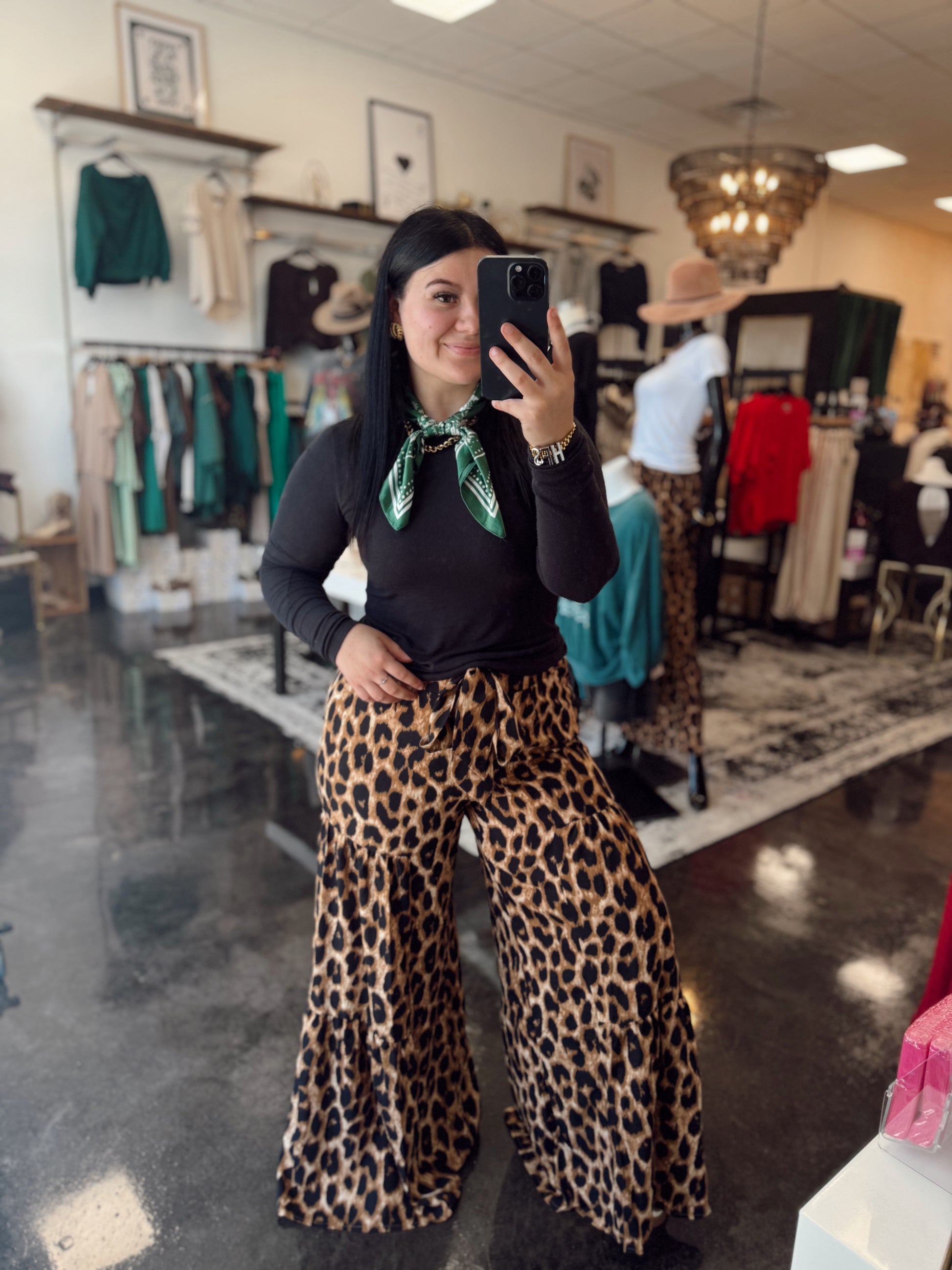 Experience the best of both worlds with our Tiered Leopard Wide Leg Pants. These pants combine fashion and comfort with their super cute and cozy design. The leopard tiered pattern adds a stylish touch while the wide leg fit ensures maximum comfort. Perfect for any occasion, these pants will elevate your style and keep you feeling comfortable all day long.