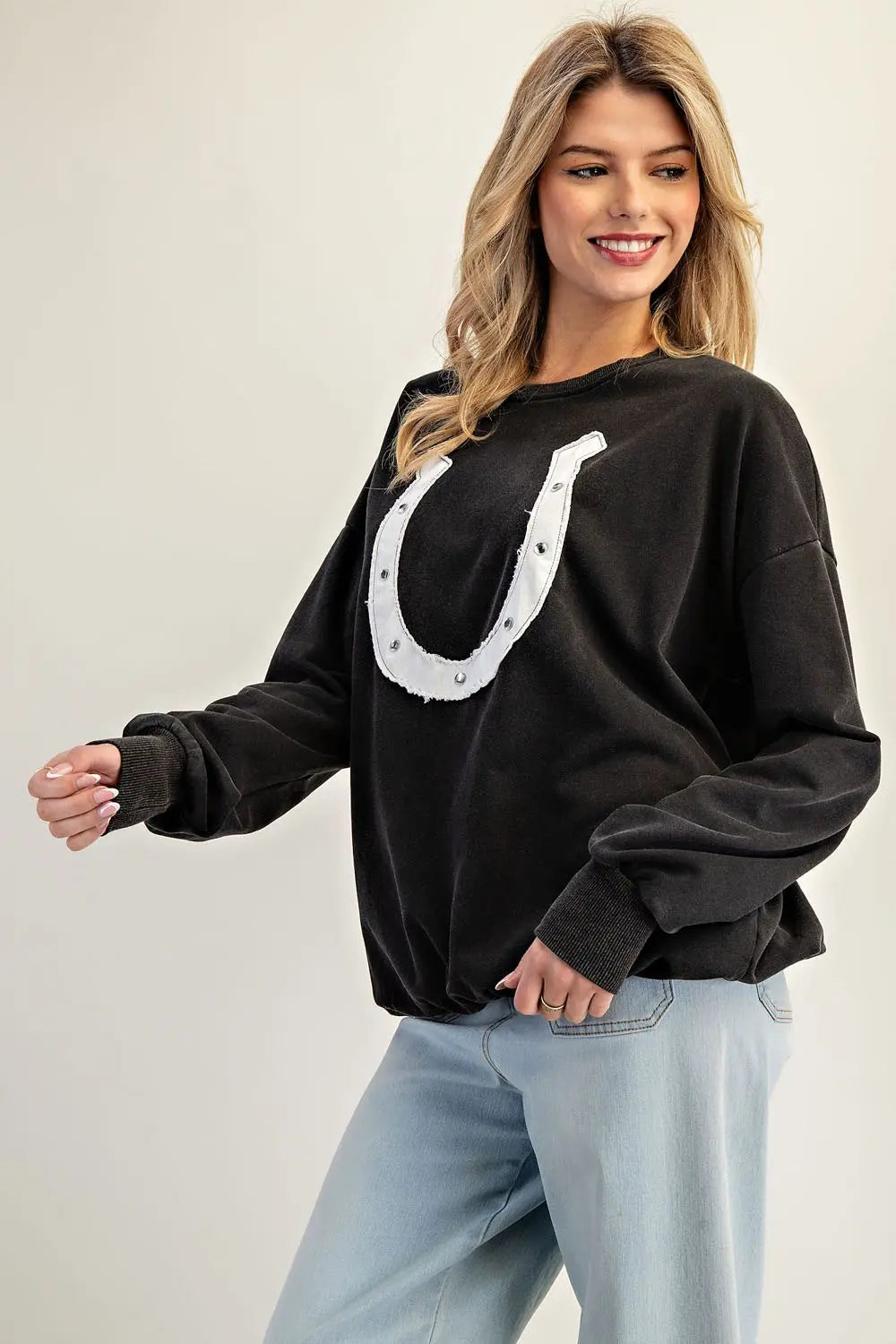 This snow washed horseshoe pullover is expertly crafted for both style and comfort. With its unique design and high-quality materials, this pullover offers a professional and polished look for any occasion. Made for the modern individual, this pullover is the perfect addition to any wardrobe.