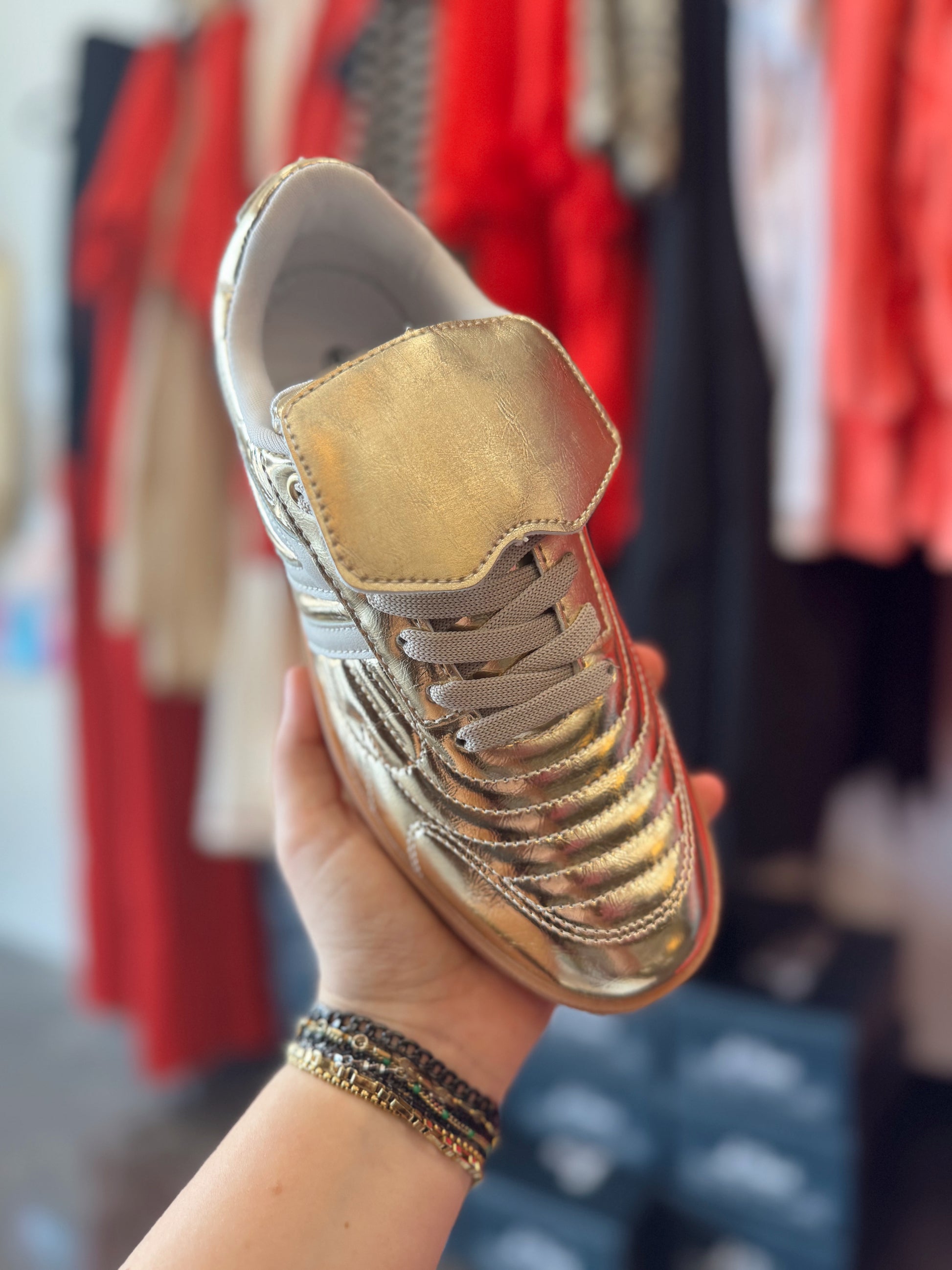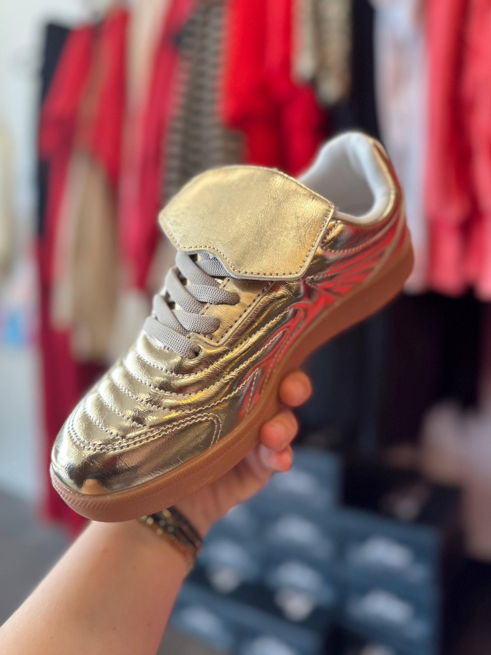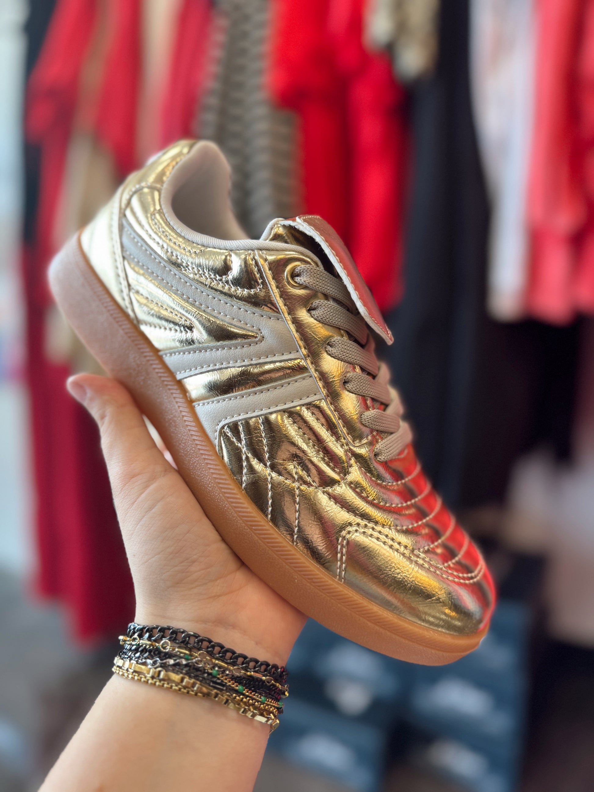 These Women Lace up Sneakers in GOLD are both stylish and comfortable. Made from high-quality materials, they are designed to provide all-day support and cushioning. With their elegant lace up design, these sneakers are perfect for any outfit. Upgrade your shoe collection with these must-have sneakers.